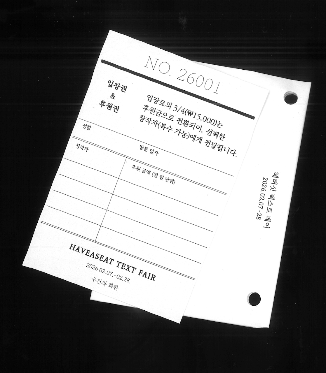 입장료는 현장에서 사용 가능한 후원 토큰으로 전환되어, 관객의 감상 경험이 창작자에 대한 지지로 이어지는 구조를 만듭니다. 감상과 유통, 실험과 경제성이 공존할 수 있는 유연한 예술 유통 방식의 가능성을 〈헤버싯 텍스트 페어〉에서 모색하고자 합니다.