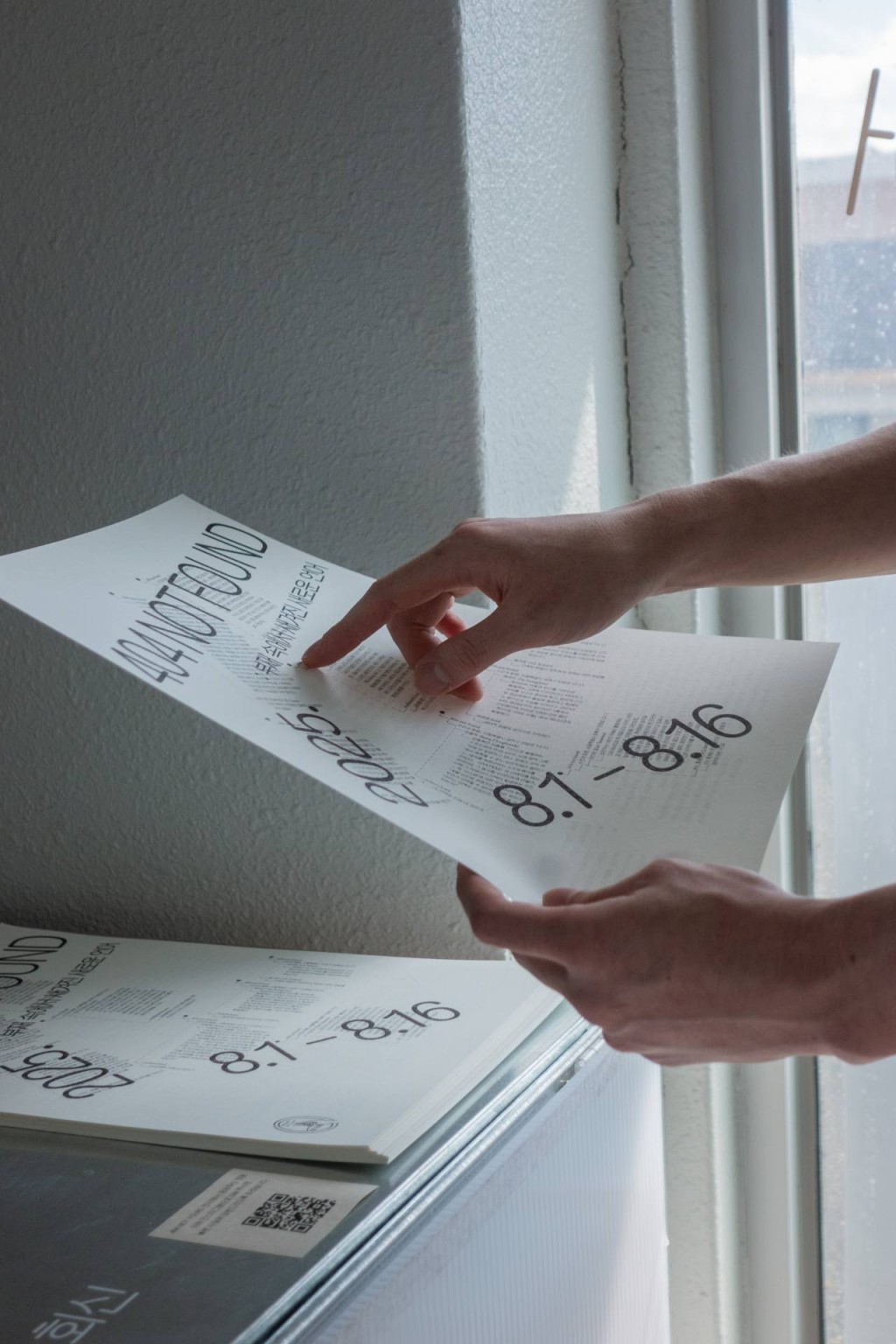 해당 전시는 최근 한국 사회의 사건들 속에서 반복적으로 드러난 기록의 누락과, 네덜란드 체류 동안 경험한 고립감에서 출발한다. 기술적 오류 메시지인 ‘404 Not Found’를 사회적 부재의 은유로 읽으며, 존재해야 할 것이 사라진 자리에서 어떤 감각과 언어가 생성되는지를 탐구한다. 참여 작가들은 다양한 미디어와 디지털 내러티브를 활용해 지워진 흔적, 소실된 기억, 불완전한 데이터의 틈을 시각화하며, 정보와 기억이 재구성되는 과정을 관객에게 공유한다. 이 전시는 부재가 남긴 공백을 새로운 관계와 해석의 가능성으로 바라보는 하나의 시도이다.